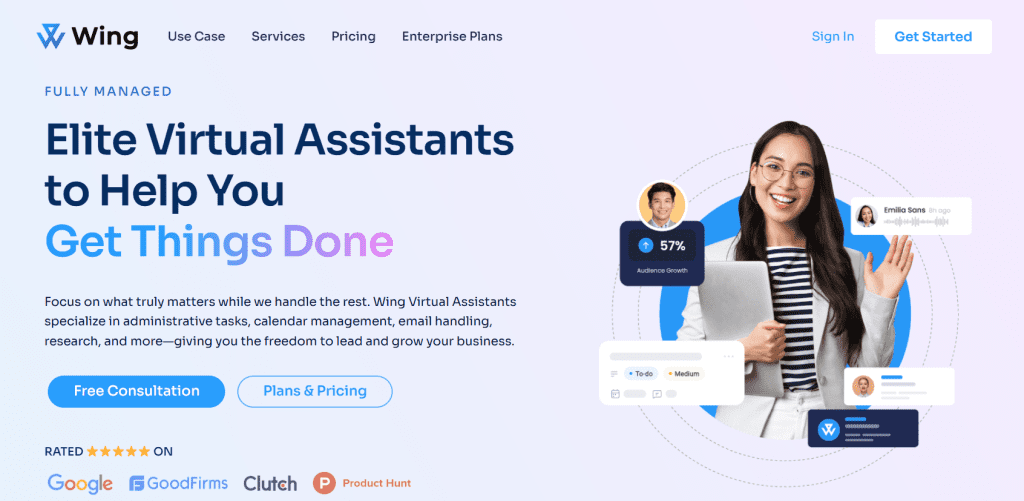 But what makes Wing Assistant stand out? It’s the General Virtual Assistant (GVA) tool, which gives you access to a customizable virtual assistant. It helps you improve productivity by simplifying many tasks.